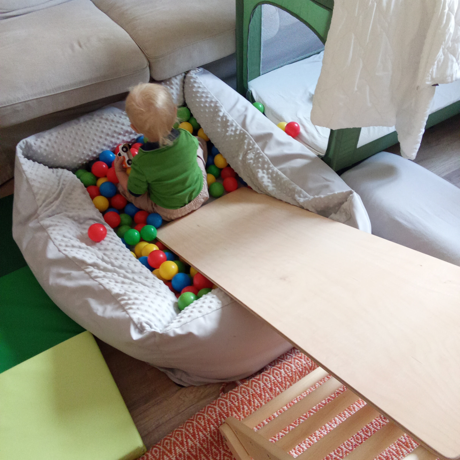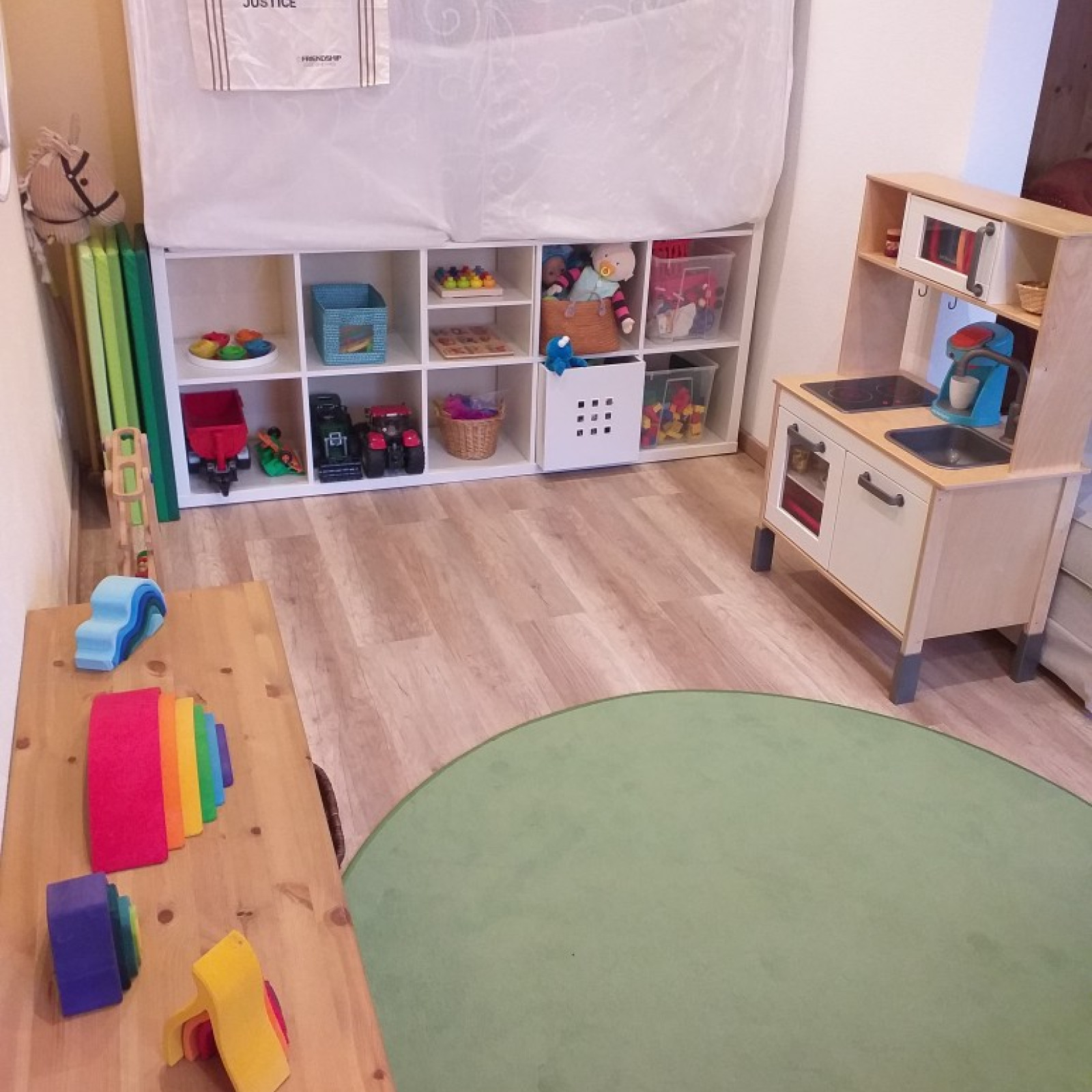 Die Räume meiner Kindertagespflege bieten den Kindern viel Platz für Bewegung, Spielen und Schlafen. Es stehen 3 liebevoll eingerichtete Räume mit einer Fläche von insgesamt 60 Quadratmetern für vielfältige Entdeckungen bereit. Die Kindertagespflege findet in meinen Wohnzimmer, Arbeitszimmer und der Küche statt. Dazu habe ich mir ein ausgeklügeltes System überlegt, das meine Räumlichkeiten mit wenigen Handgriffen in einen ansprechenden Spielbereich verwandelt. Die Einrichtung hat Wohlfühlcharakter und eine kindgerechte Ausstattung. Sicherheit ist beim Spielen wichtig und so sind die Räume mit verschiedenen Features ausgestattet, die unbekümmertes Spielen ermöglichen.